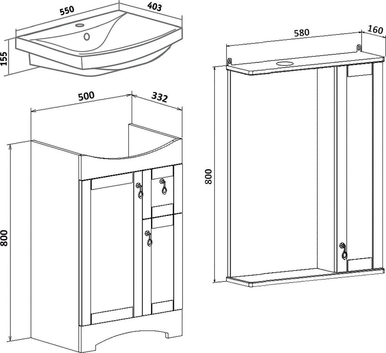 | Тип зеркала | Зеркало с полкой и шкафом |