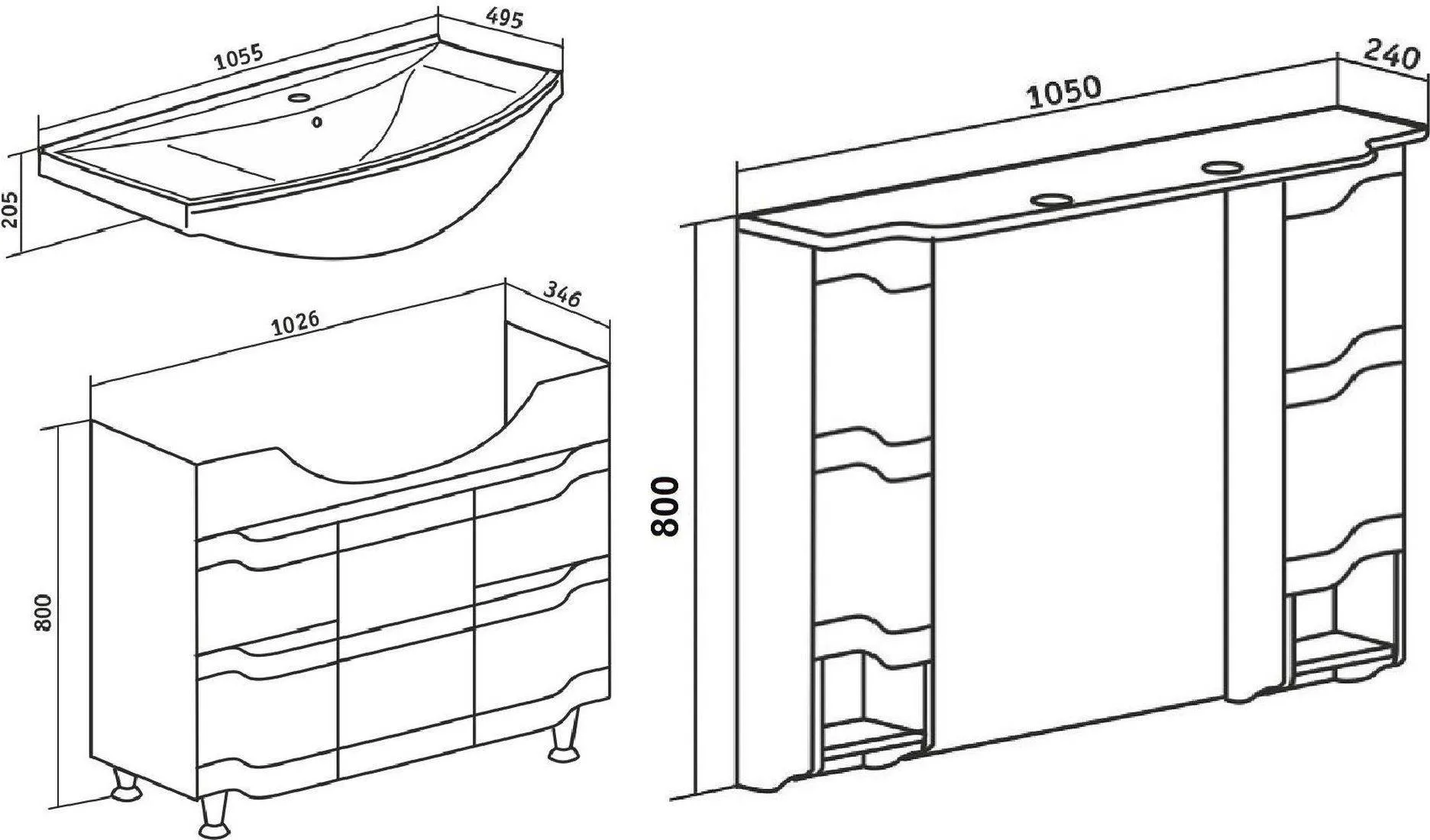 | Тип зеркала | Зеркало с полкой и шкафом |