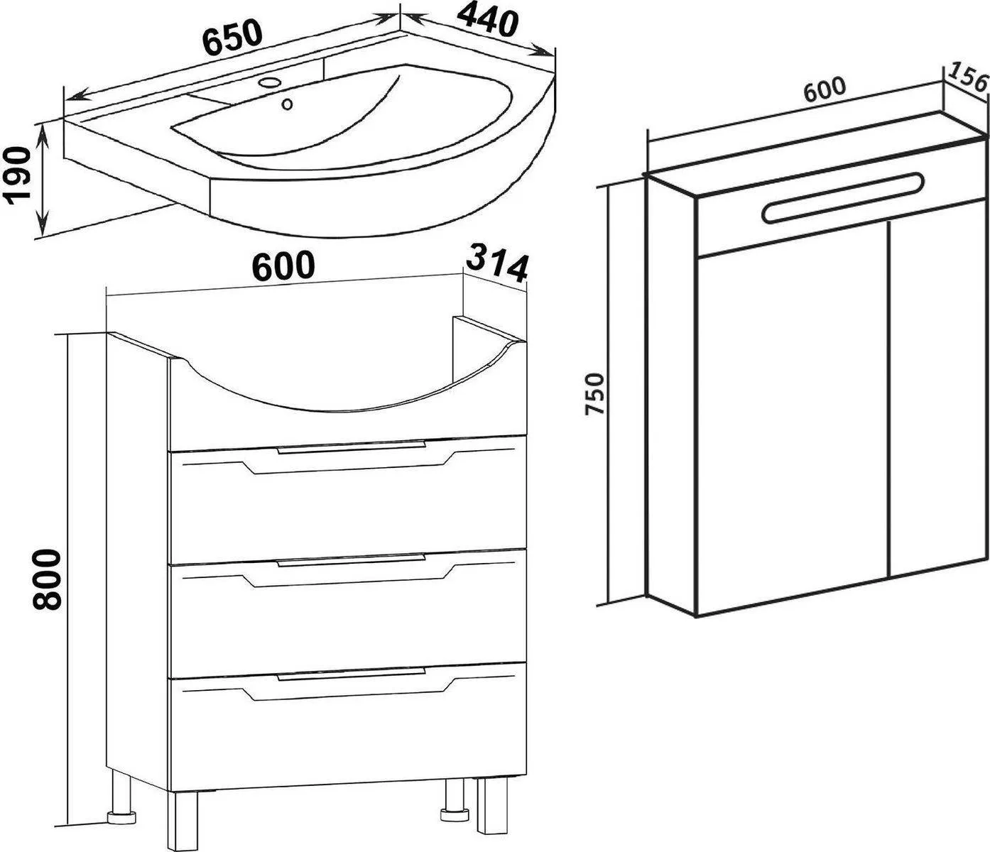 Мебель для ванной Runo Верона 65 напольная
