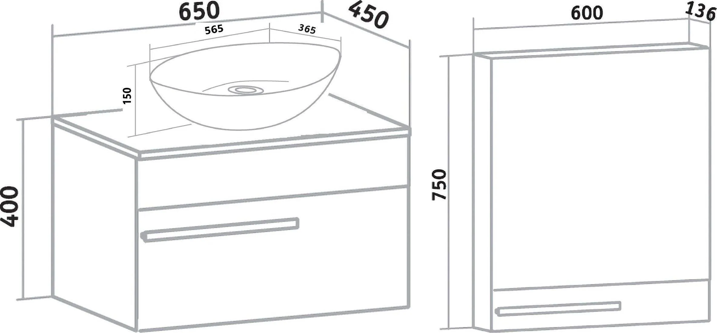 Мебель для ванной Runo Вудлайн 65 подвесная