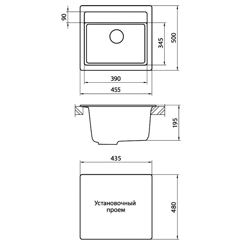 - Отверстие под смеситель.