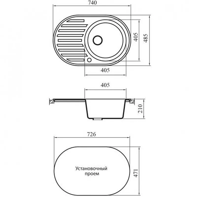 - Размер мойки (ШxВхГ): 74 х 21 х 48,5 см.