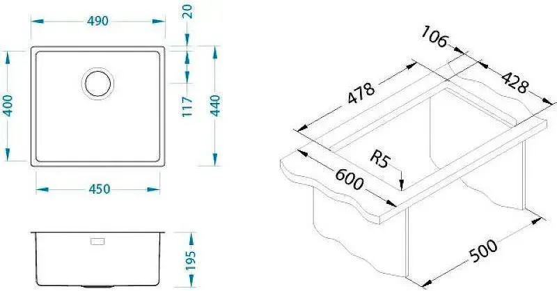 Комплект поставки: мойка, корзинчатый вентиль, сифон, крепления.