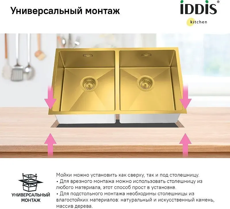 Мойки из нержавеющей стали прекрасно сочетаются с любым стилем дизайна кухни. Благодаря своей современной и элегантной внешности, они придают кухне стильный вид и являются универсальным решением для дизайна от классики до современности.