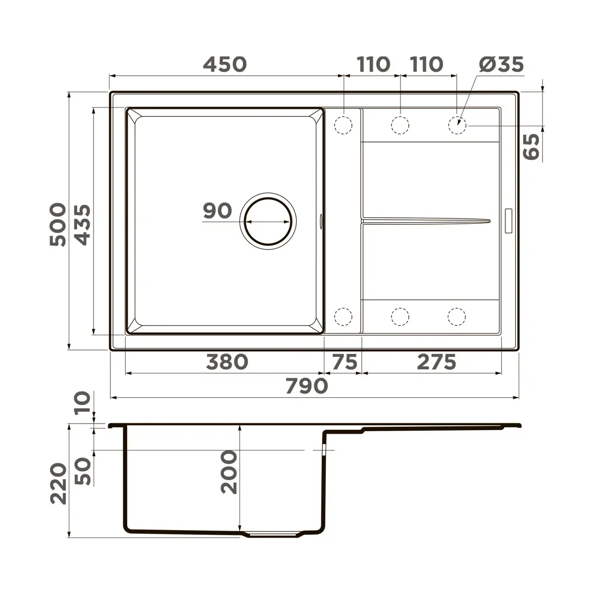 Принято считать, что мойки из искусственного камня очень тяжелые и толстые, однако, благодаря европейской инновационной технологии, стало возможно изготовление моек с тонким бортом.