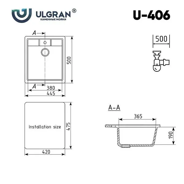 Мойка для кухни Ulgran Classic 45 см U-406-302