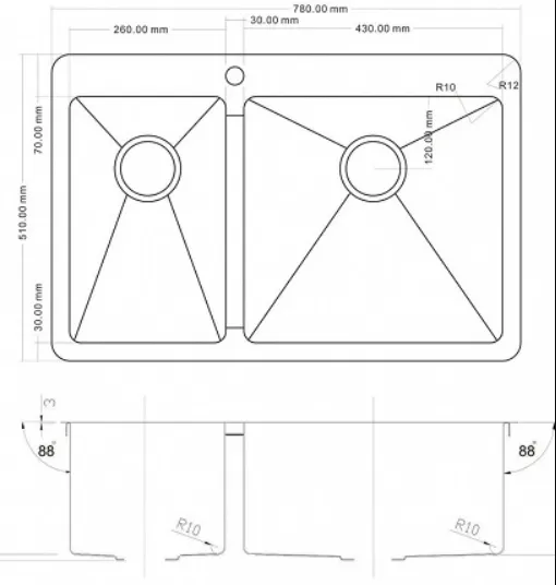 толщина мойки 1,5 мм (бортик мойки 3 мм)
