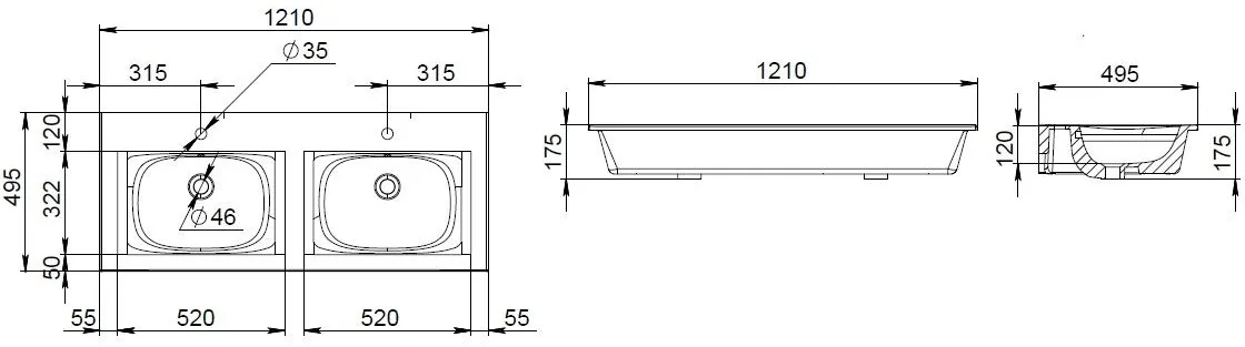 | Отверстия под смеситель | 2 отверстия |