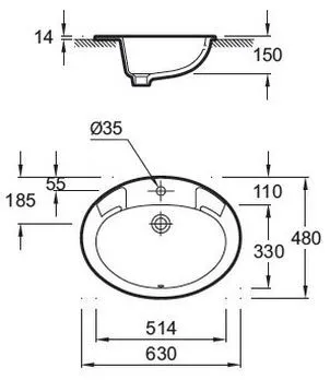 Раковина Jacob Delafon Ovale E1273-00 63х48 см