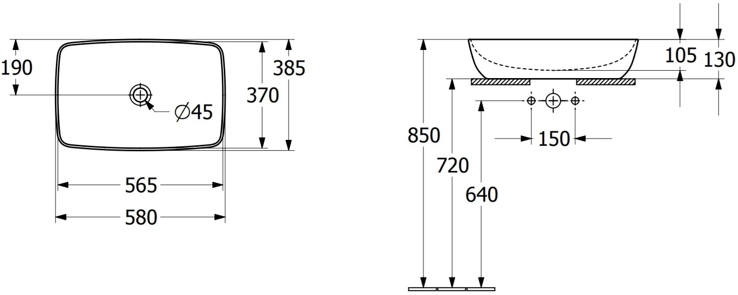 Дополнительная информация | нижняя сторона раковины нешлифованная |