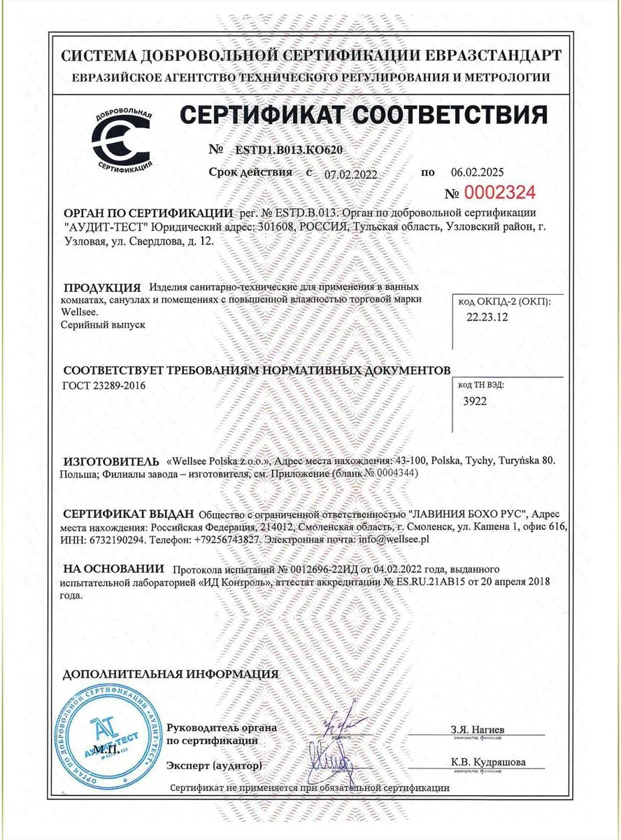 Четко отлаженная система экспресс-доставки позволит каждому покупателю получить товар в отличном состоянии и точно в срок. Перед погрузкой сантехники в специализированный грузовой транспорт каждое изделие проходит детальный визуальный осмотр для предупреждения возможных повреждений или неверной комплектации. Опытный курьер с самым высоким рейтингом обслуживания бесплатно поднимет заказ в квартиру, распакует и продемонстрирует товар, а также предоставит все необходимые гарантийные документы на покупку.