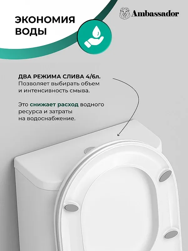 Унитаз-компакт Ambassador Abner 107K19001RS напольный безободковый с микролифтом