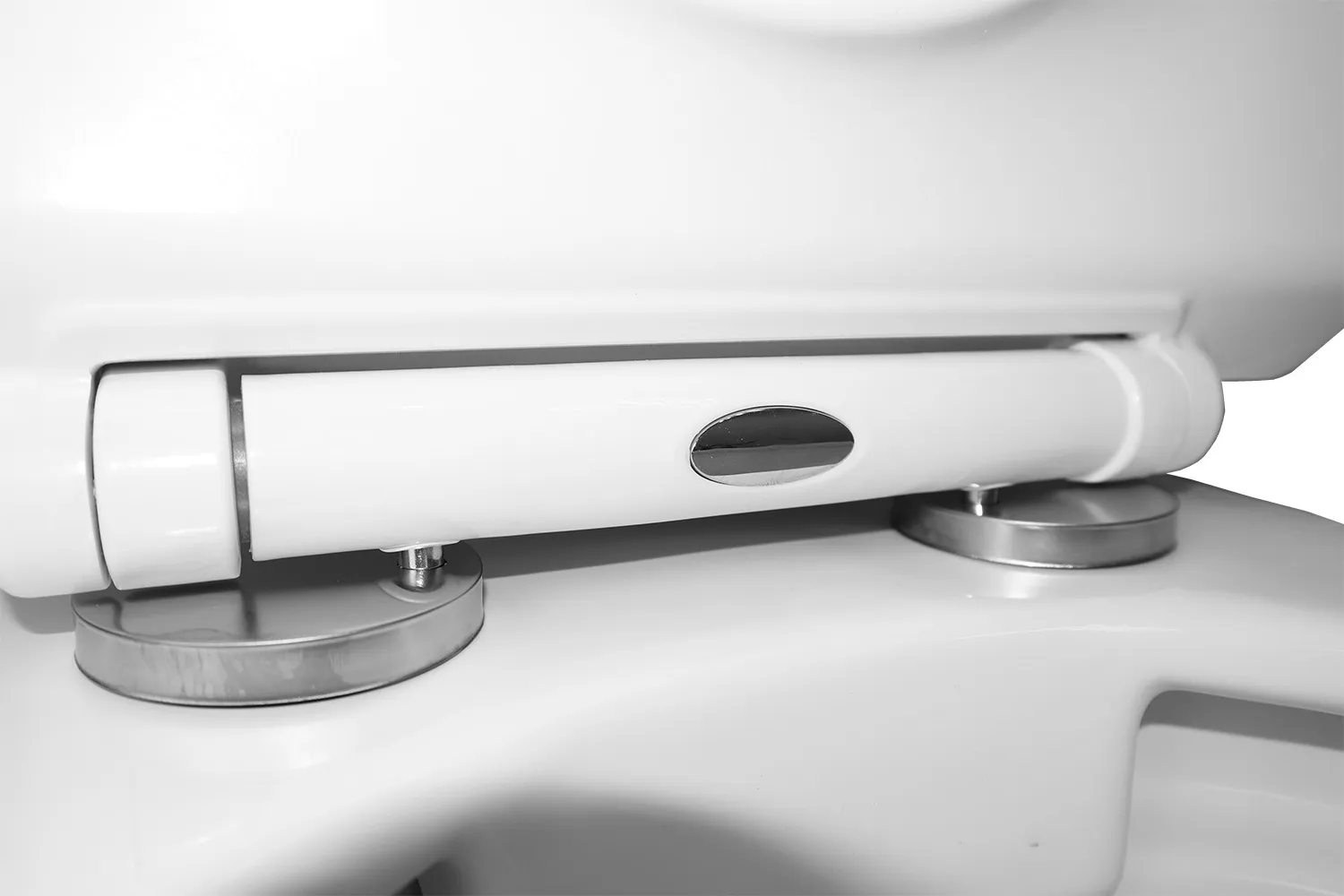 Унитаз с функцией плавного опускания выполнен из прочного и высококачественного дюропласта.