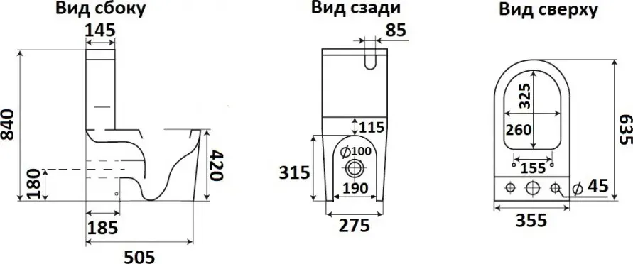 | Оснащение | чаша унитаза / крышка-сиденье / бачок |