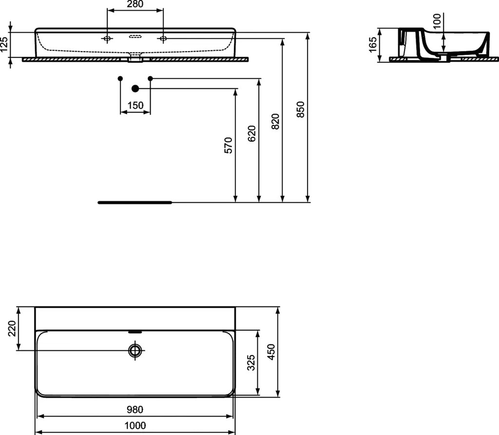 | Дополнительная информация | раковина без отверстия под смеситель, крепится двумя подвесными болтами M 10 x 140 мм (приобретаются отдельно) |