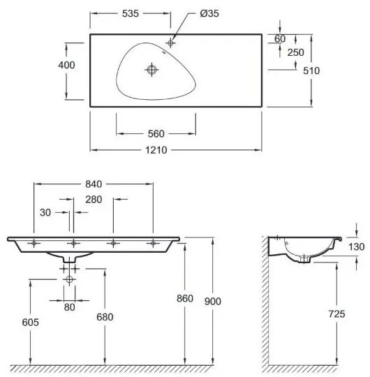 Раковина Jacob Delafon Nouvelle Vague 121 см EXAP112-Z-MK4