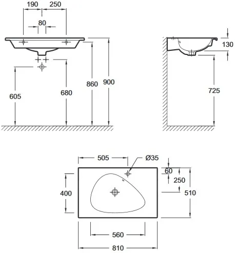 | Отверстия под смеситель | На 1 отверстие |