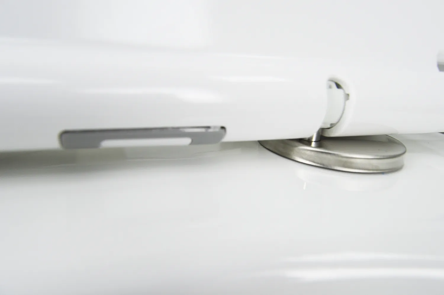 Унитаз с функцией плавного опускания выполнен из прочного и высококачественного дюропласта.