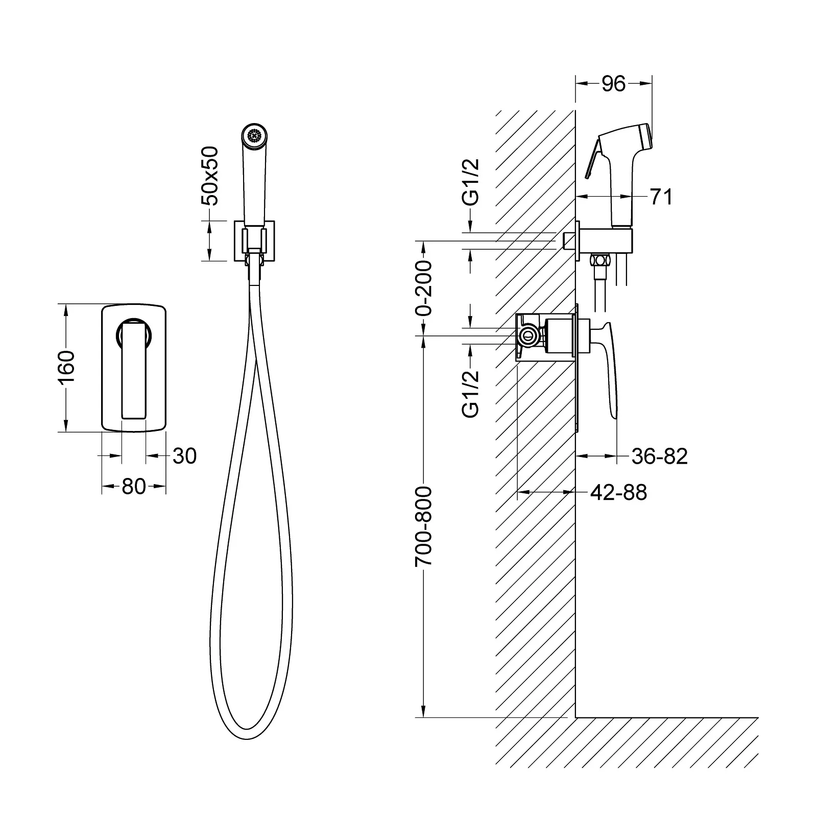 | Оснащение | смеситель / душевая лейка / душевой шланг / настенный держатель |