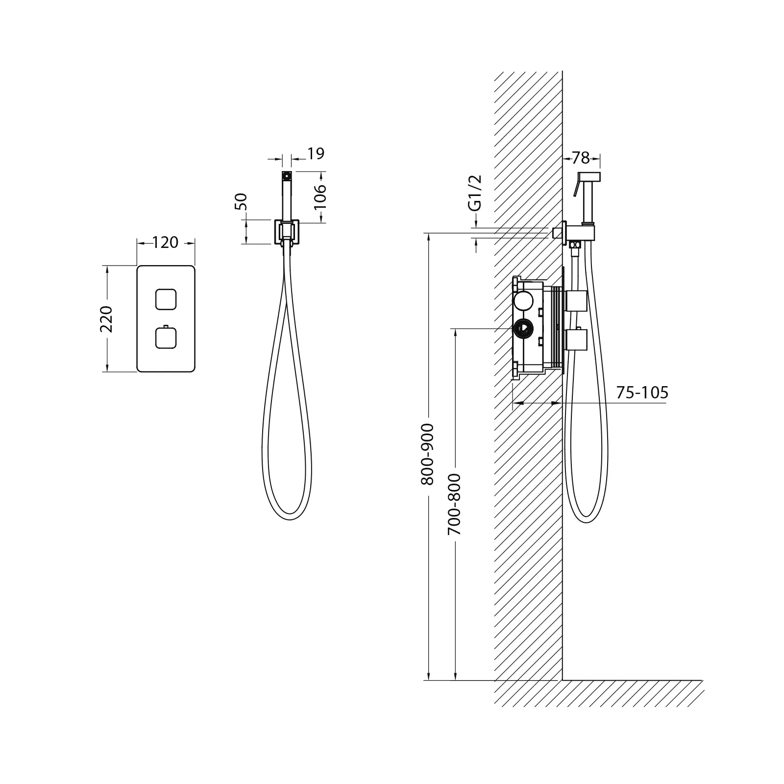 | Оснащение | смеситель / душевая лейка / душевой шланг / настенный держатель |