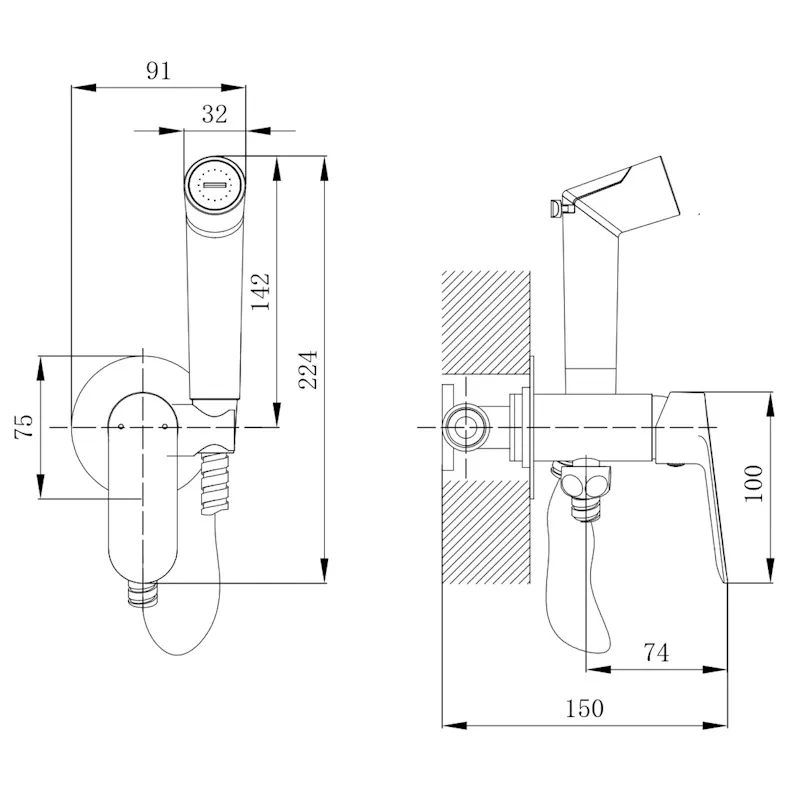| Оснащение | смеситель / душевая лейка / держатель для душевой лейки / душевой шланг |