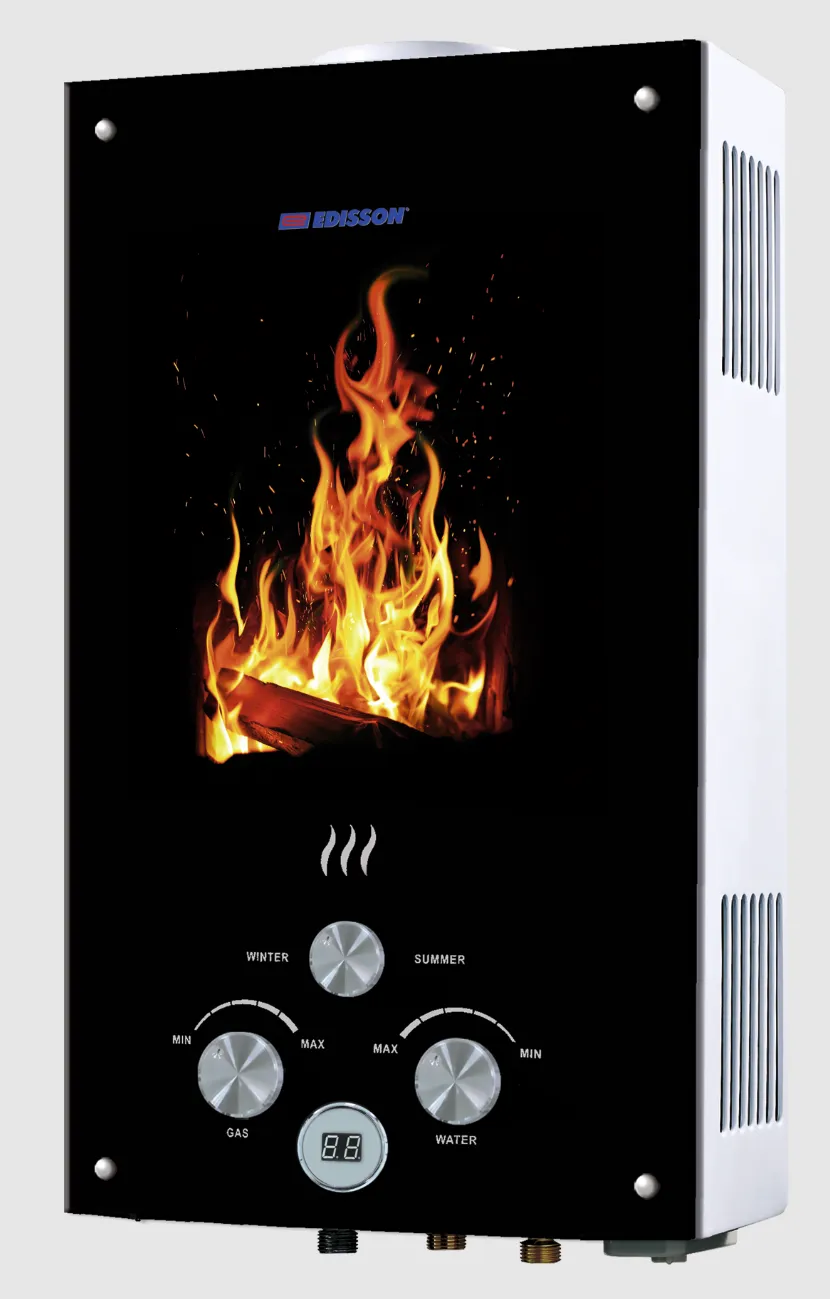 Семейство газовых проточных водонагревателей от компании EDISSON поможет наладить систему горячего водоснабжения в любом доме. Для работы приборы необходимо подключить к сети магистрального газа. Линейка представлена широким ассортиментом моделей с различным дизайном лицевой панели. Здесь пользователь найдет, как классический, белый вариант исполнения, так и уникальные модели, где на лицевую панель нанесен роскошный пейзаж или великолепная картина с изображенной на ней горящей топкой камина. Все модели отличаются стабильной работой даже при пониженном давлении газа. Для экономии, предусмотрен специальный переключатель «зима/лето». Розжиг производится от батареек, которые, как и душевая насадка, поставляются в комплекте с оборудованием.