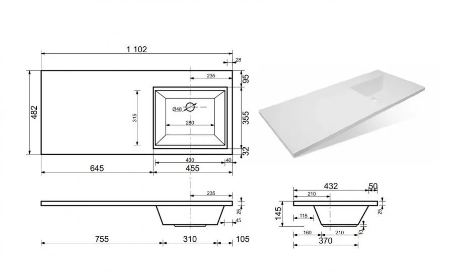 Мебельная раковина Эстет Даллас 110 ФР-00001668 правая