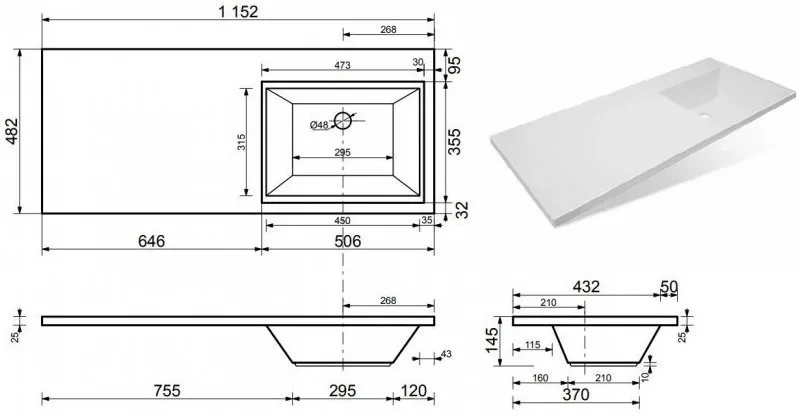 Мебельная раковина Эстет Даллас 115 СС-00000519 правая