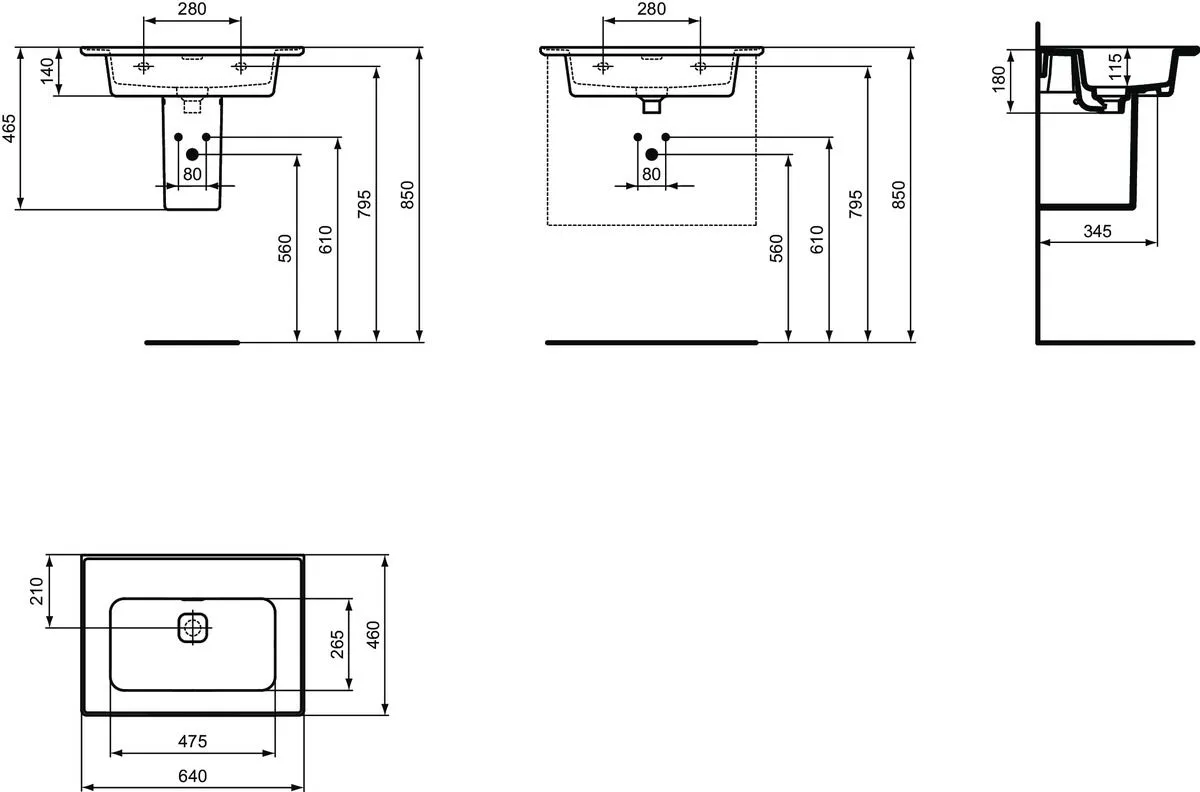 Дополнительная информация | раковина без отверстия под смеситель, крепится двумя подвесными болтами M10 x 140 мм (приобретаются отдельно) |