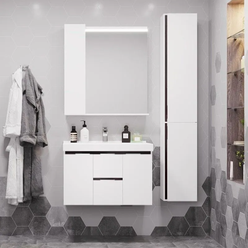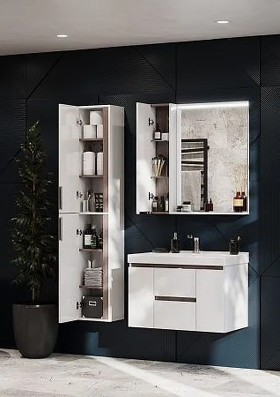Шкаф-пенал Акватон Рене 31x169 см белый / тёмное дерево 1A222003NRC80