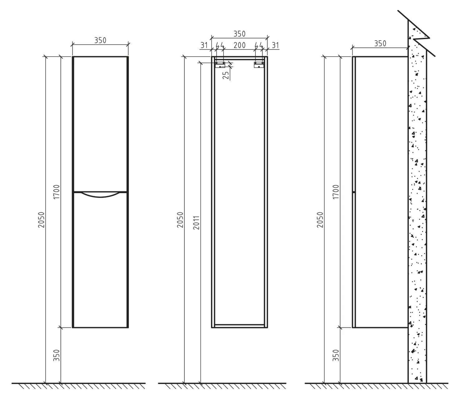 Шкаф-пенал BelBagno Ancona-N 35x170 ANCONA-N-1700-2A-SC-WO-L левый