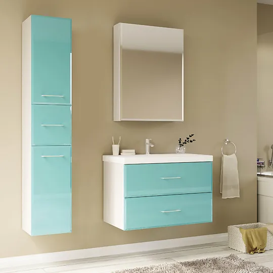 Шкаф-пенал Marka One Mix бирюзовое стекло, ручки рейлинг