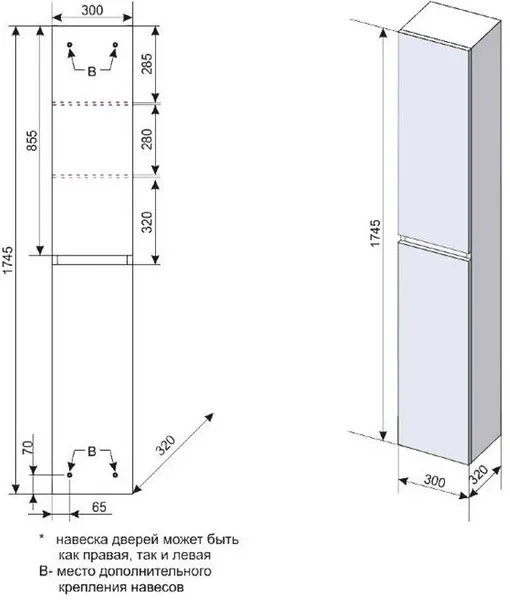 Шкаф-пенал Style Line Даймонд 30x175 СС-00000484 левый