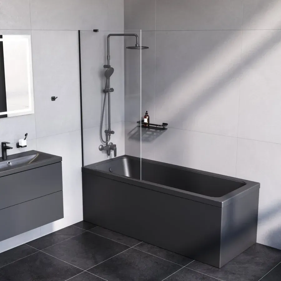 Душевая шторка на ванну AM.PM Gem 80x140 W90BS-080-140BT стекло прозрачное профиль черный
