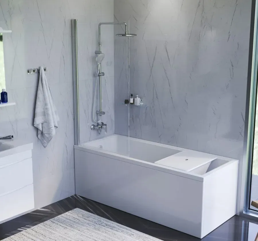 На 100% защищает от разбрызгивания и предотвращает скопление воды за пределами ванны.