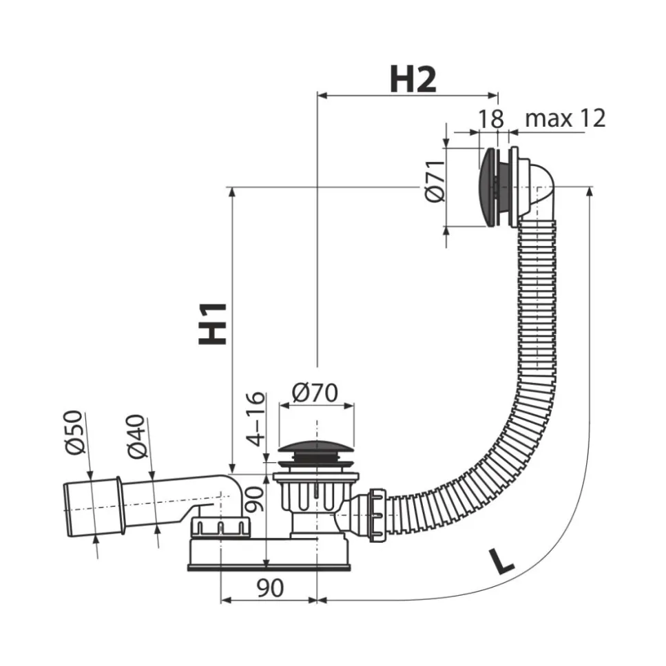 Слив-перелив AlcaPlast A507BLACK-80 автомат 80 см