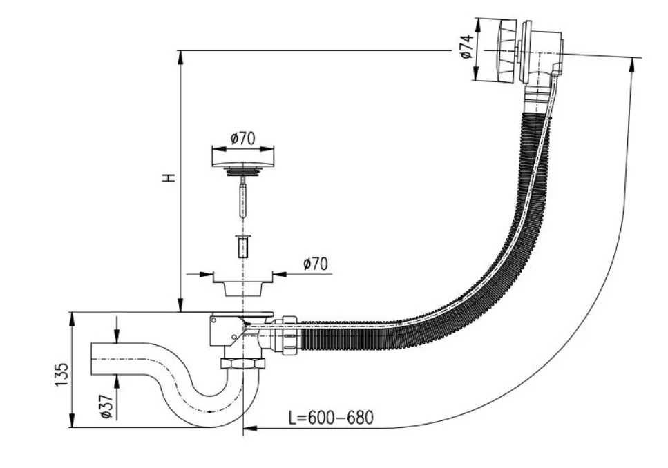 Вид слива-перелива | Полуавтоматический (тросик) |