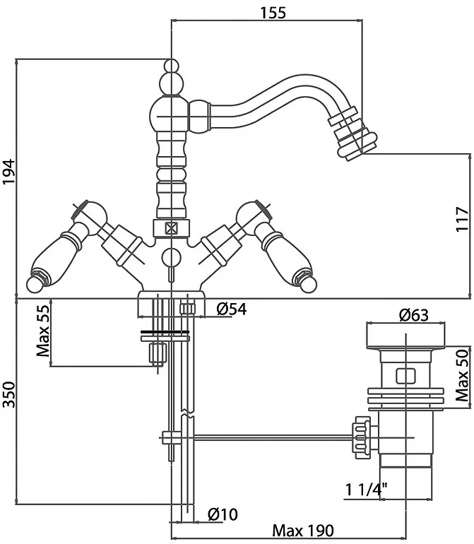 Смеситель Caprigo Adria Swarovski 01B-033-crm для биде с донным клапаном