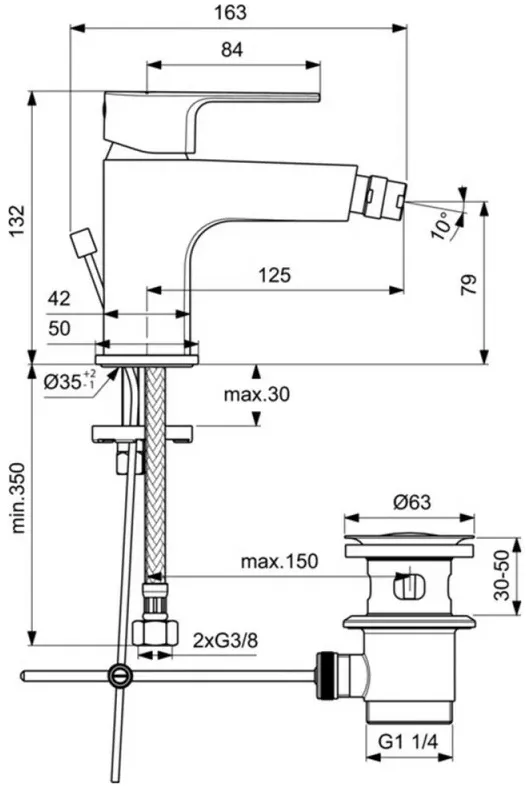 Смеситель Ideal Standard Cerafine D BC691AA для биде с донным клапаном