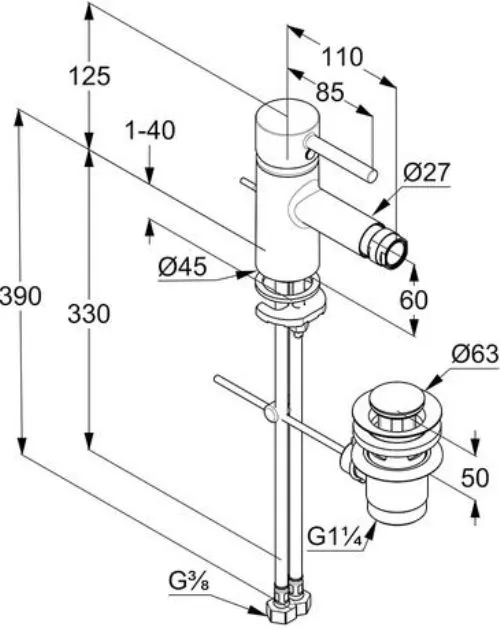 Смеситель Kludi Bozz 385330576 для биде с донным клапаном