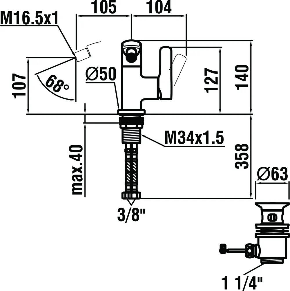 Стандарт подводки | 3/8 |