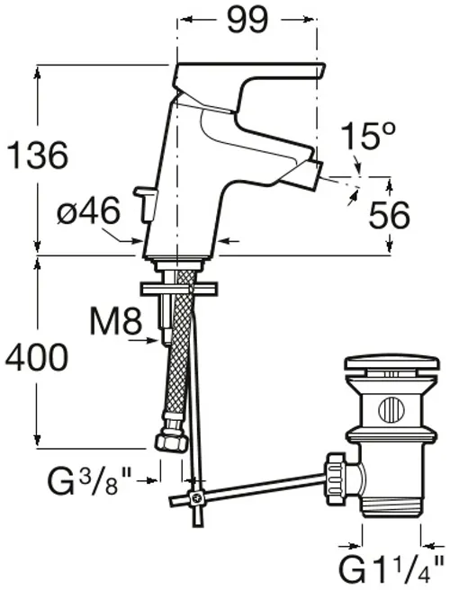 Смеситель Roca Malva 5A603BC0M для биде с донным клапаном