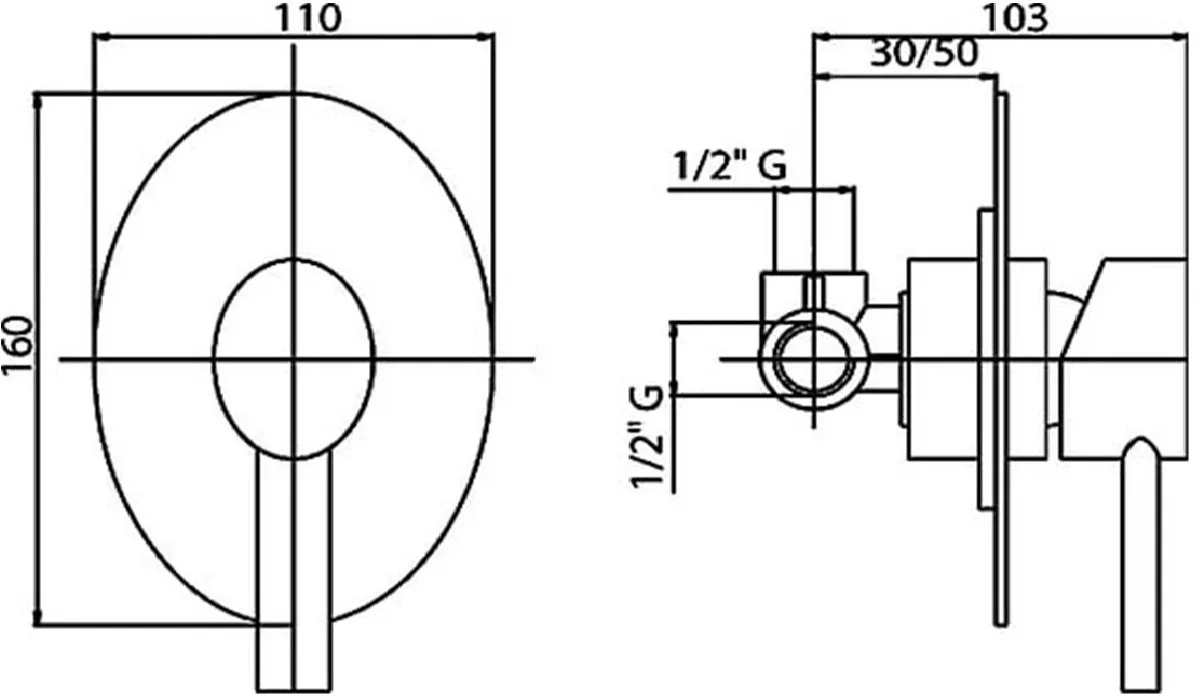 Смеситель Cezares Over OVER-DIM-01-Cr для душа с внутренней частью