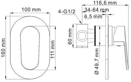 Смеситель WasserKRAFT Donau 5351 для душа с внутренней частью