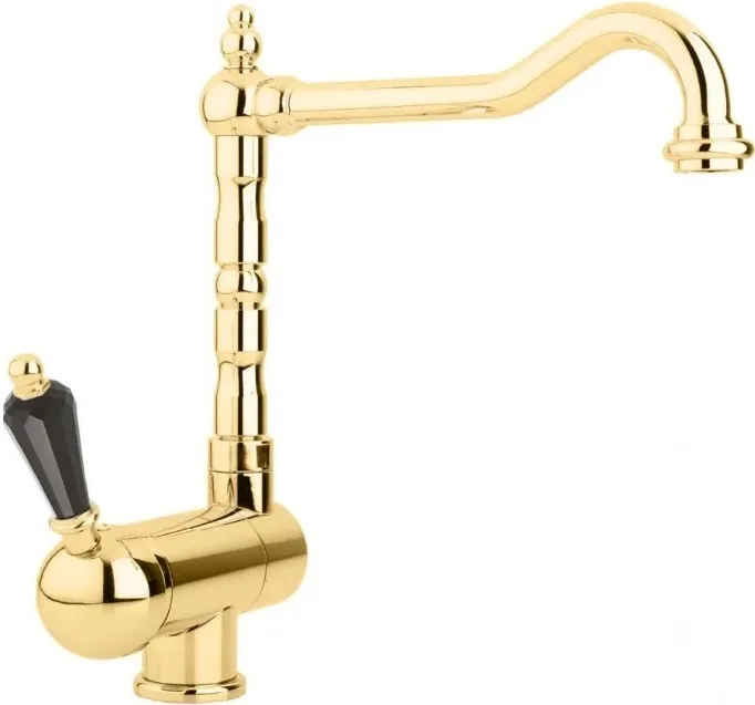 Дополнительная информация | регулируемый угол наклона излива, ручки кристаллы Swarovski Nero, рабочий интервал давления в водопроводной сети: 0,5-6,0 Атм, золото 24 карат |