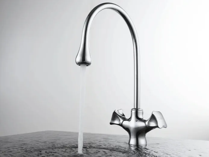 А мне понравился оригинальный дизайн этого смесителя. Выглядит он прикольно, подходит для кухни просто идеально. У него самый высокий изогнутый краник, поэтому вода льется четко по центру кухонной мойки и по бокам уже не выливается.