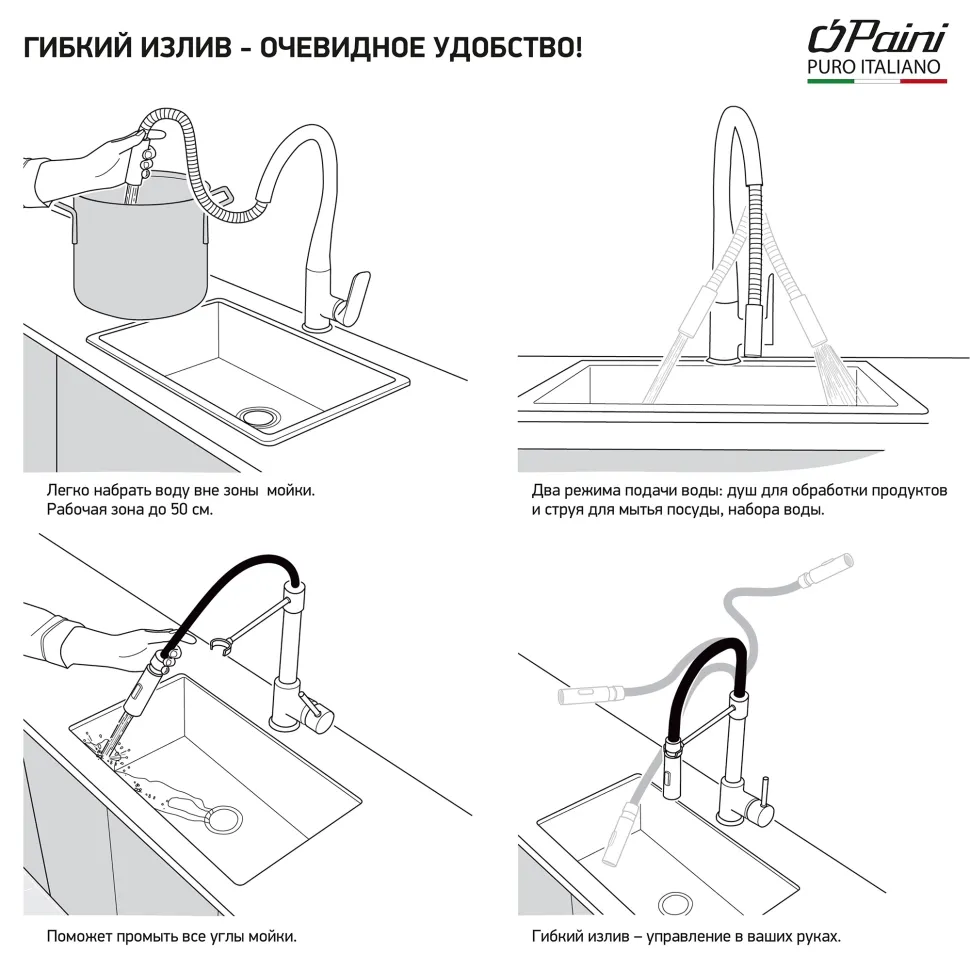 Смеситель для кухонной мойки PAINI Barolo A9CR557LMKM