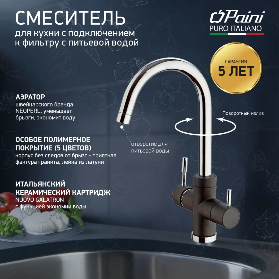 Смеситель для кухонной мойки PAINI Cox 7844643CR3V11L2KM