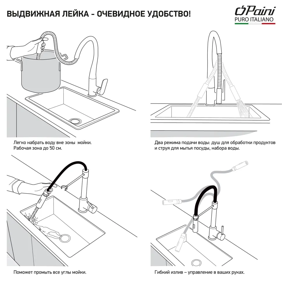Компания Paini была основана в Италии в 1954 году. За полувековую историю небольшая мастерская выросла до международного лидера по производству смесителей. Сегодня сантехнической оборудование Paini выпускается на заводе общей площадью 76 000 кв. м, а годовой оборот компании достигает 4 млн единиц товаров. Благодаря нанесению на корпус высокотехнологичного PVD покрытия смесители отличаются хорошим запасом стойкости к внешним воздействиям. Над созданием премиум-коллекций Paini работает арт-директор, архитектор и режиссер Mirko Bosio.