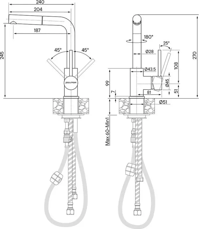 PAULMARK (ПАУЛЬМАРК) - высокотехнологичная немецкая торговая марка, специализирующаяся на производстве кухонных моек из кварцевого композита и нержавеющей стали AISI304, окрашенных по технологии PVD смесителей для кухни, раковин для ванной комнаты, аксессуаров и комплектующих для них. Сертификация ISO 9001 и Ростест, надёжность и долговечность, высококачественные и безопасные материалы.